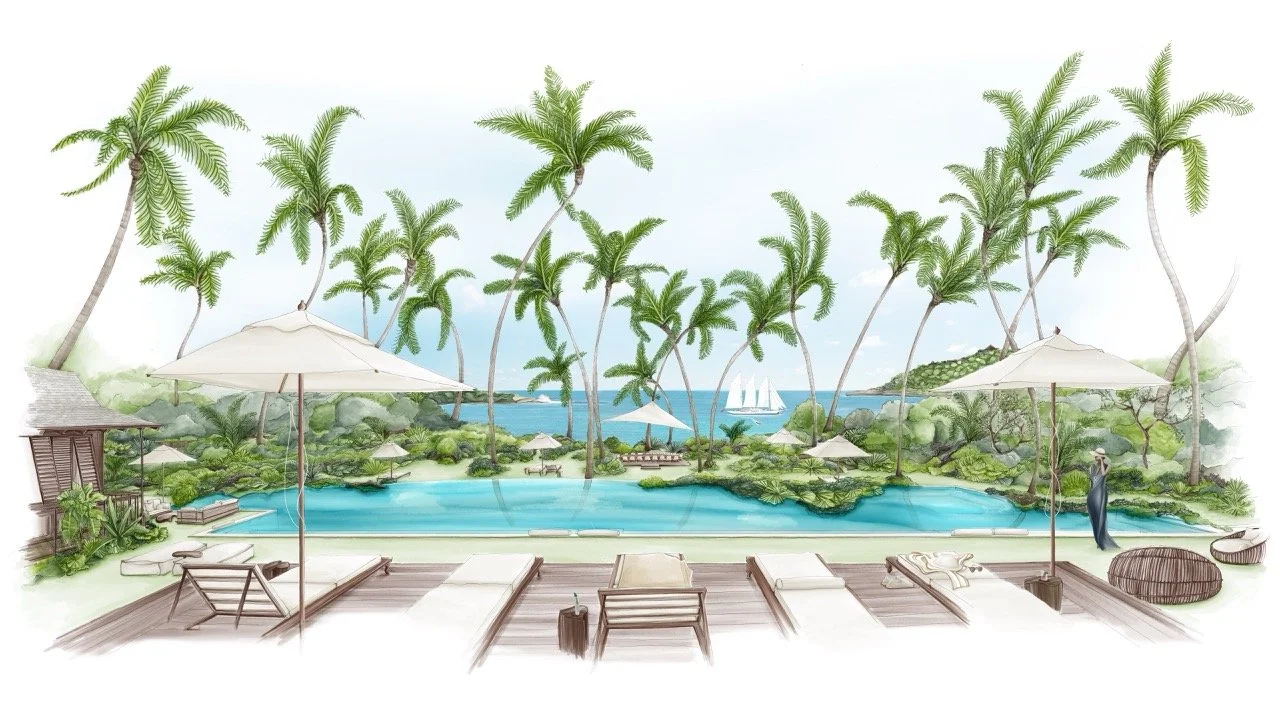 Artistic proposals were requested to denote a vision of how a private estate plot could be developed into a dream retreat in one of the most desirable locations of the Caribbean. At almost 4 acres in size, the overall concept was envisaged as something quietly designed into the low-lying landscape, with respect to the laterally thin shape of the estate plot.