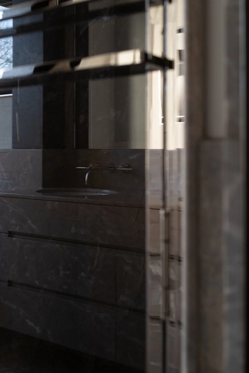 The bathrooms were finished in a variety of marbles with varying thicknesses and finishes including leathering, honing and semi-polishing. All marble was sourced directly from Italy, with two visits required to select the appropriate blocks & materials.