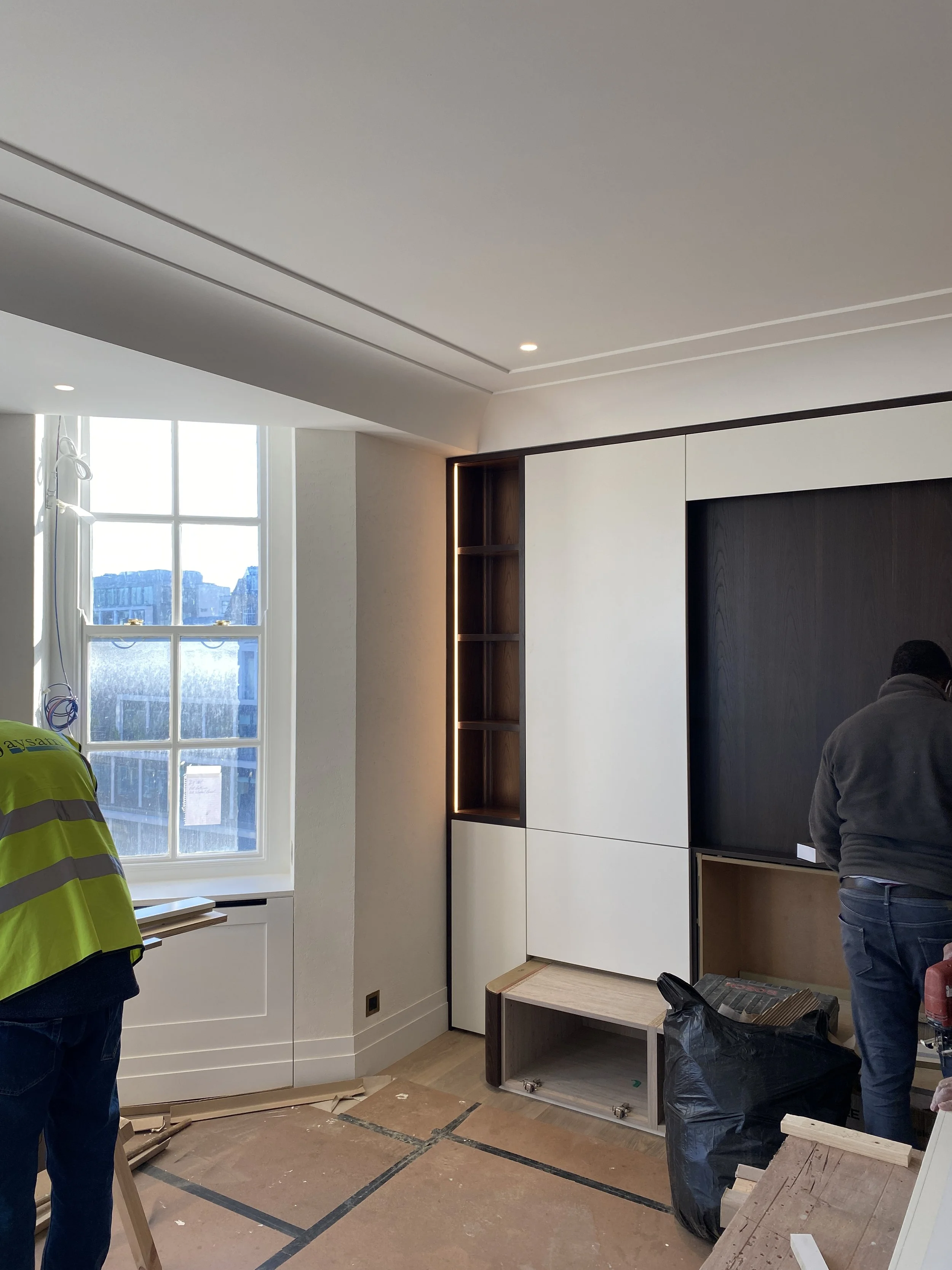 The residential core of the building is composed of a central stair with internal lift, providing access for two apartments at each level. This fourth floor apartment of c.3000 sqft required a full refurbishment to a construction programme of thirty weeks in total.